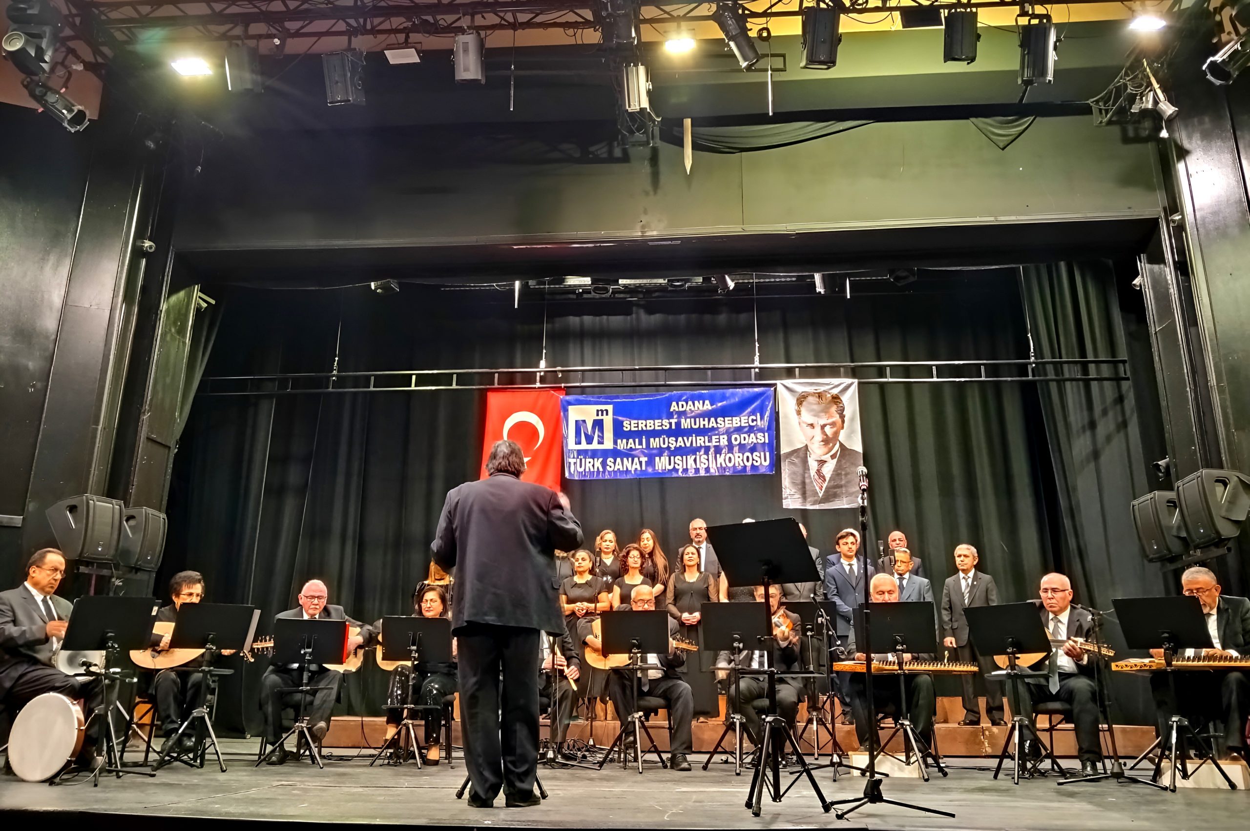 1-7 Mart Muhasebe Haftası etkinlikleri kapsamında, Adana Mali Müşavirler Odası bünyesinde faaliyet gösteren Türk Sanat Müziği Korosu, Adana Büyükşehir Belediyesi Tiyatro Salonu’nda konser verdi. Aylar süren hazırlıkların ardından sahneye çıkan 21 kişilik koro, iki bölümden oluşan programda hüzzam, hüseyni ve nihavent makamındaki eserleri seslendirdi. Şefliğini Mehmet Turan Eren’in yaptığı ve Kübra Demir’in sunduğu gecede konuşan Oda Başkanı Levent Deniz, yoğun çalışma temposu içinde bu tür kültür-sanat etkinliklerinin meslektaşlar için bir nefes olduğunu ifade etti. Konserde koro ve solistlere usta saz sanatçıları eşlik etti ve dinleyicilere keyifli bir müzik akşamı yaşatıldı.